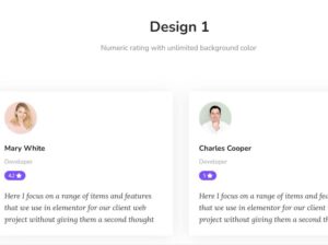 テキスト、星評価、ユーザー名、肩書き、写真などを組み合わせて、信頼性の高いレビューセクションを簡単に作れます。